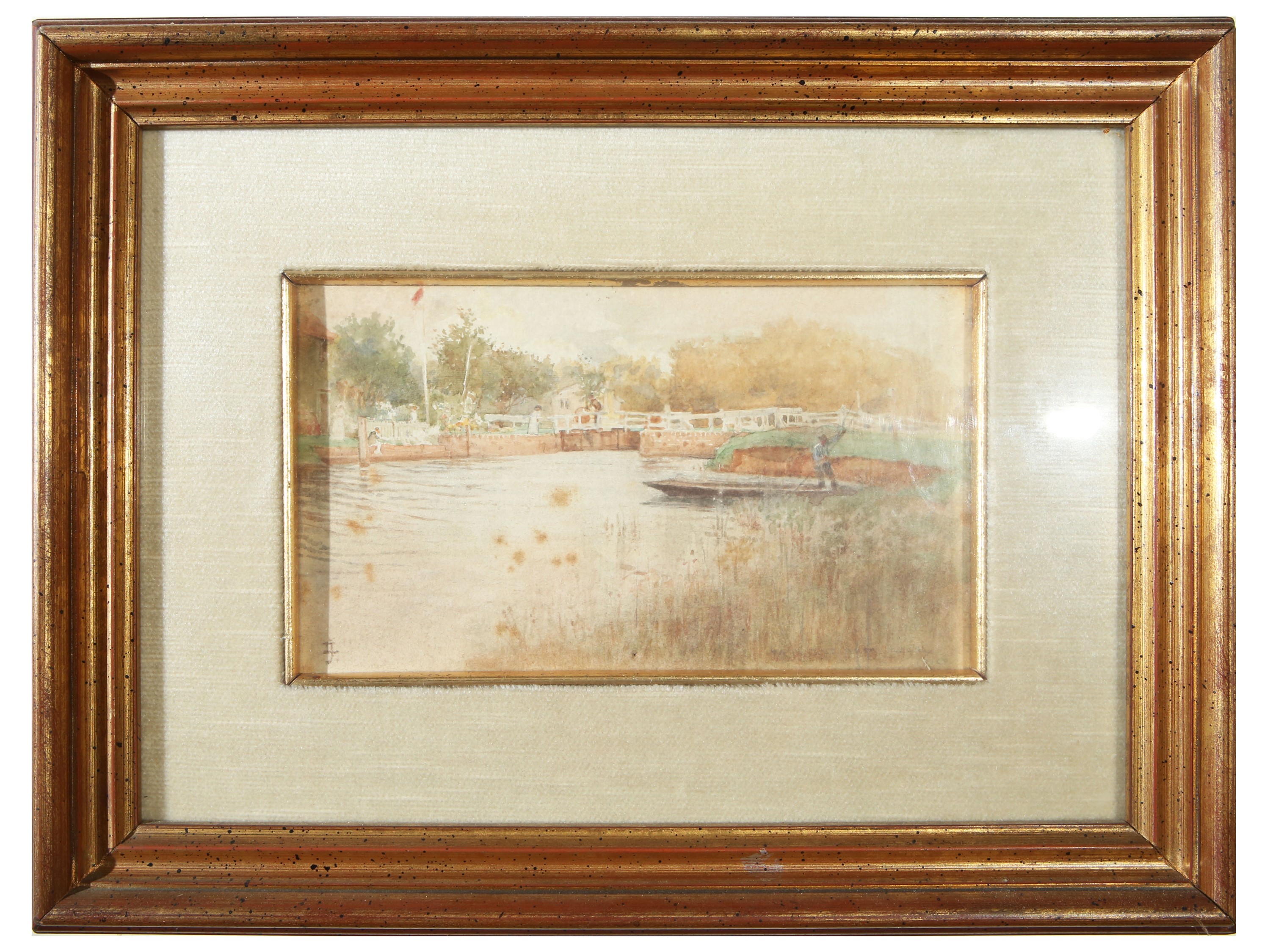XX secolo un piccolo dipinto ad olio su tavoletta e un acquerello su cartoncino, uno siglato, in cornice, alcuni difetti