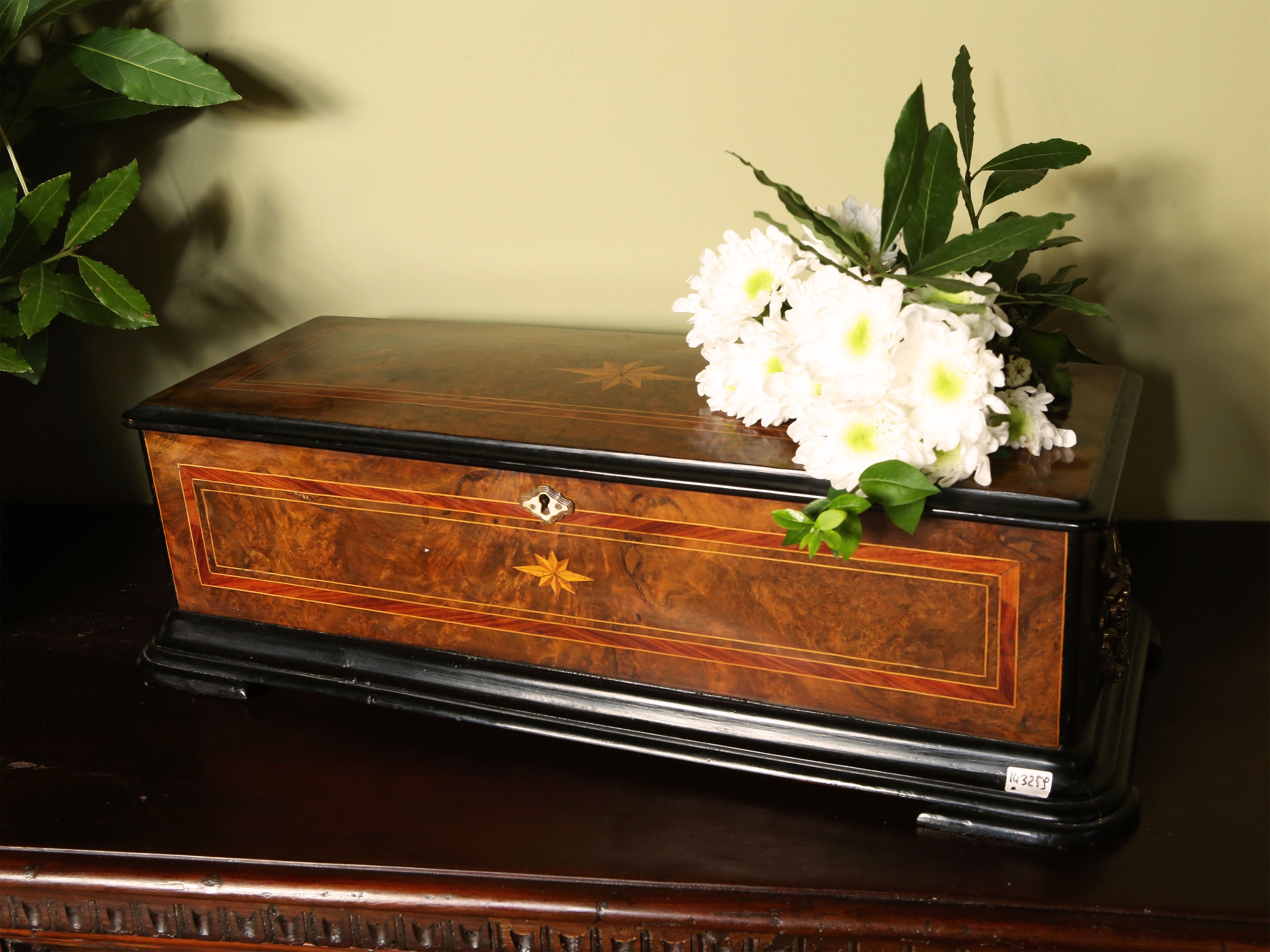 seconda metà del XIX secolo intarsiato con filettature e motivo di rosa dei venti, dettagli ebanizzati, maniglie in metallo, lievi difetti
