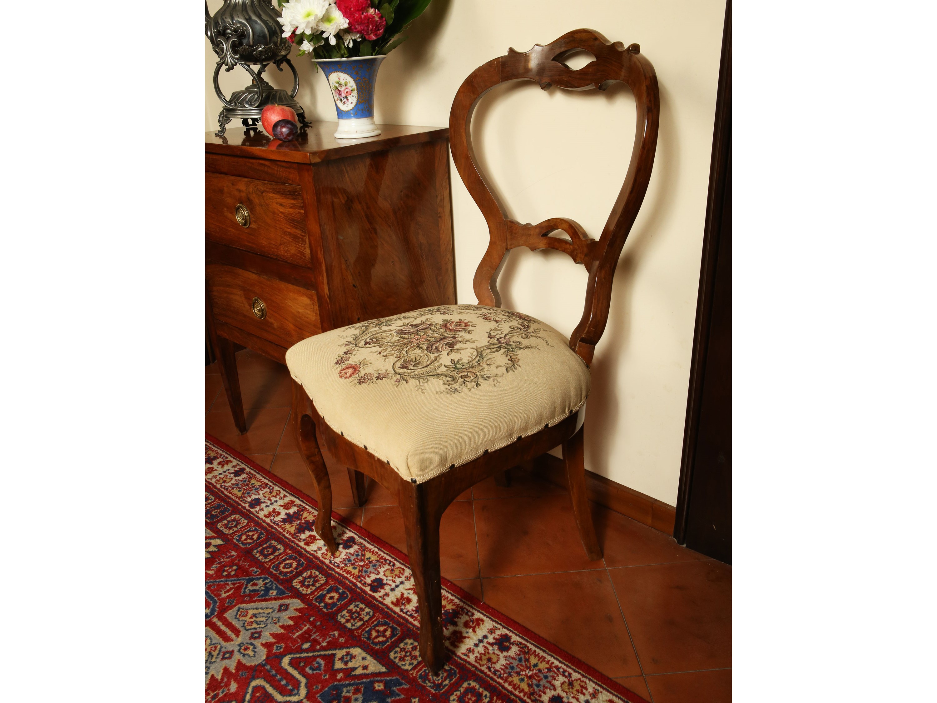 seconda metà del XIX secolo schienali arrotondati, gambe anteriori mosse, sedili rivestiti in velluto rigato, abbinate ad una coppia simile con sedili in tessuto floreale (6)