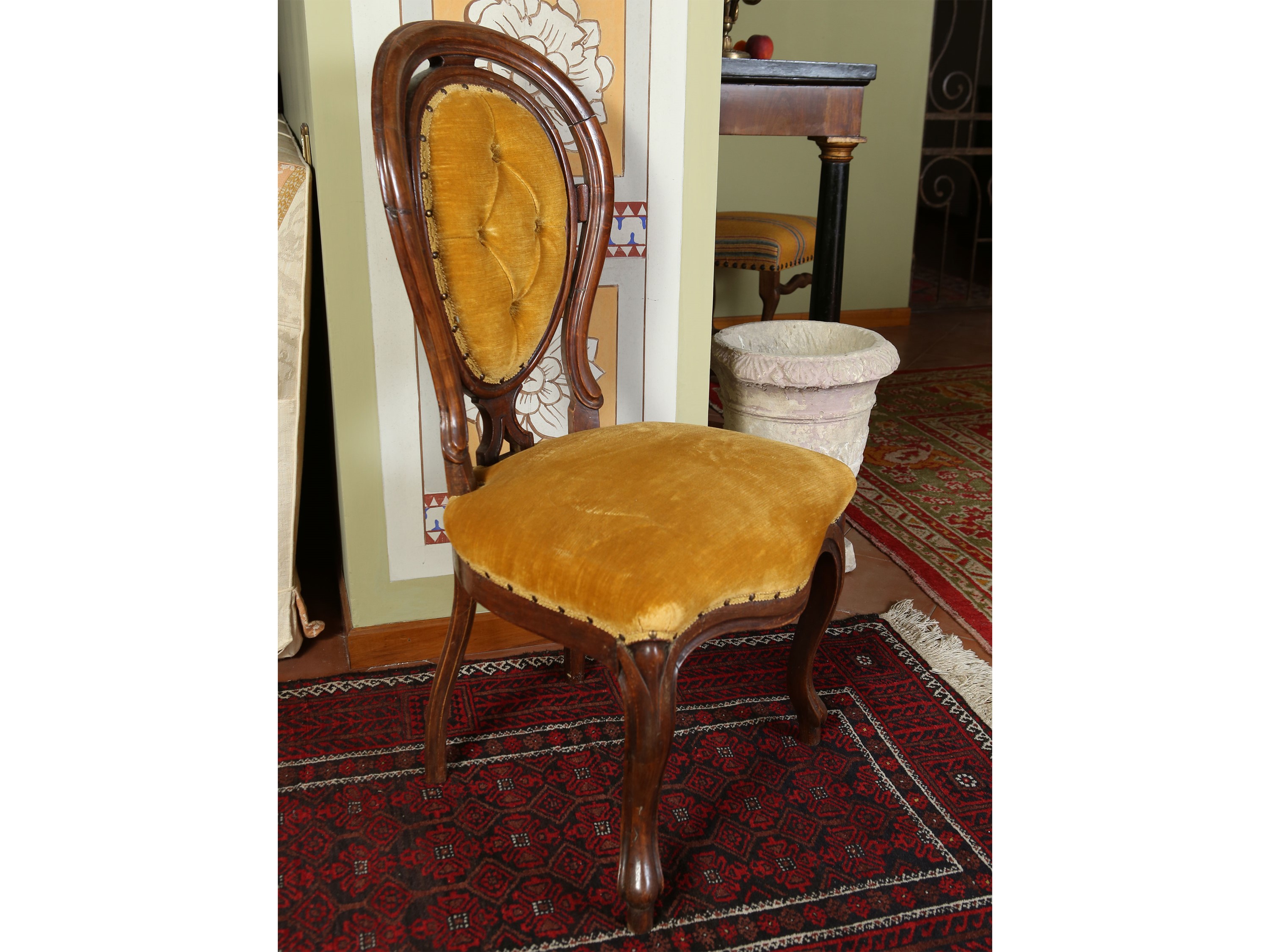 seconda metà del XIX secolo schienali ovoidali capitonné, rivestite in velluto giallo oro