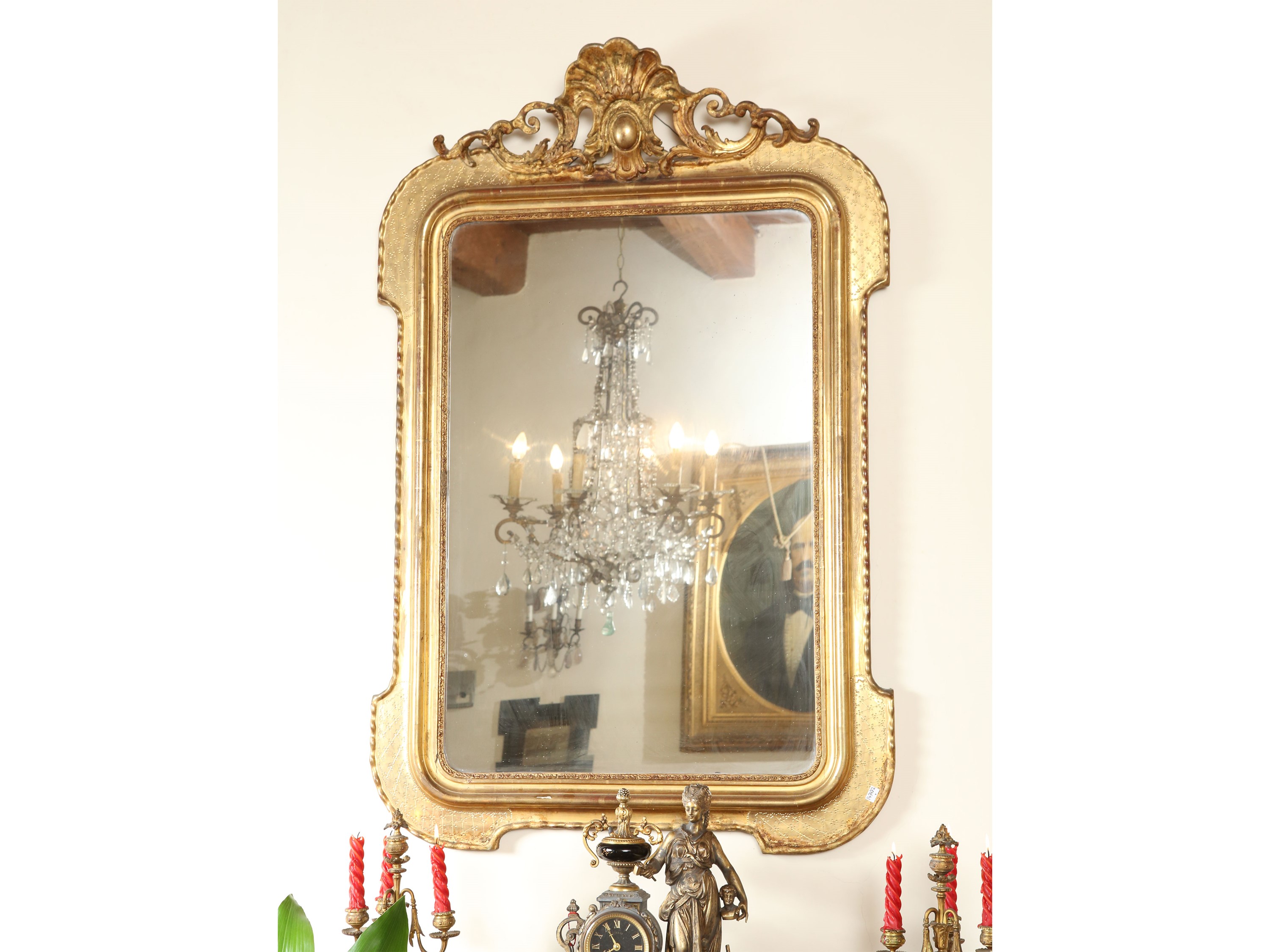 Specchiera con cornice in legno e pastiglia dorata