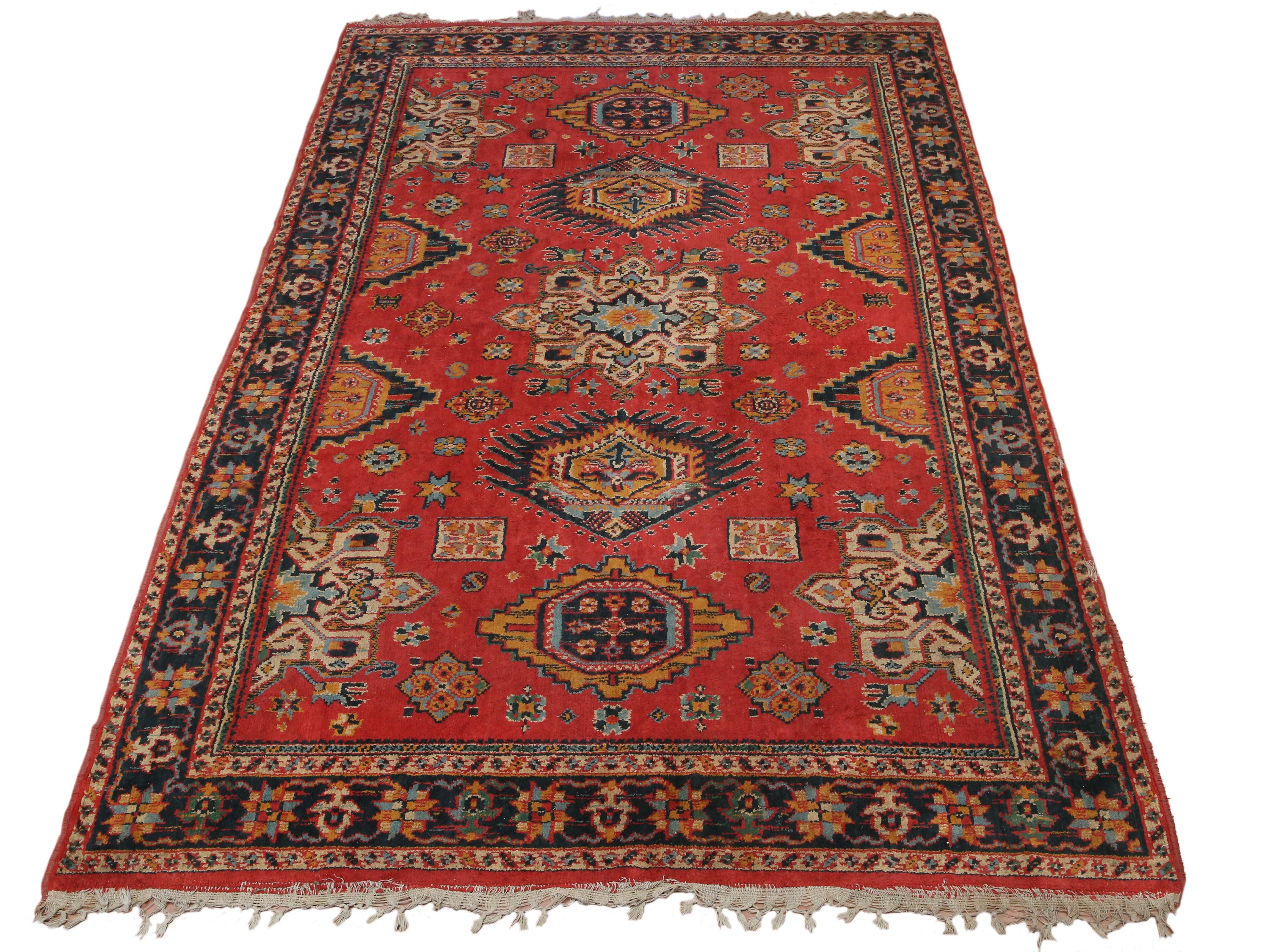 fondo mattone con motivi geometrici nei toni del blu, del giallo e del beige, alcuni difetti