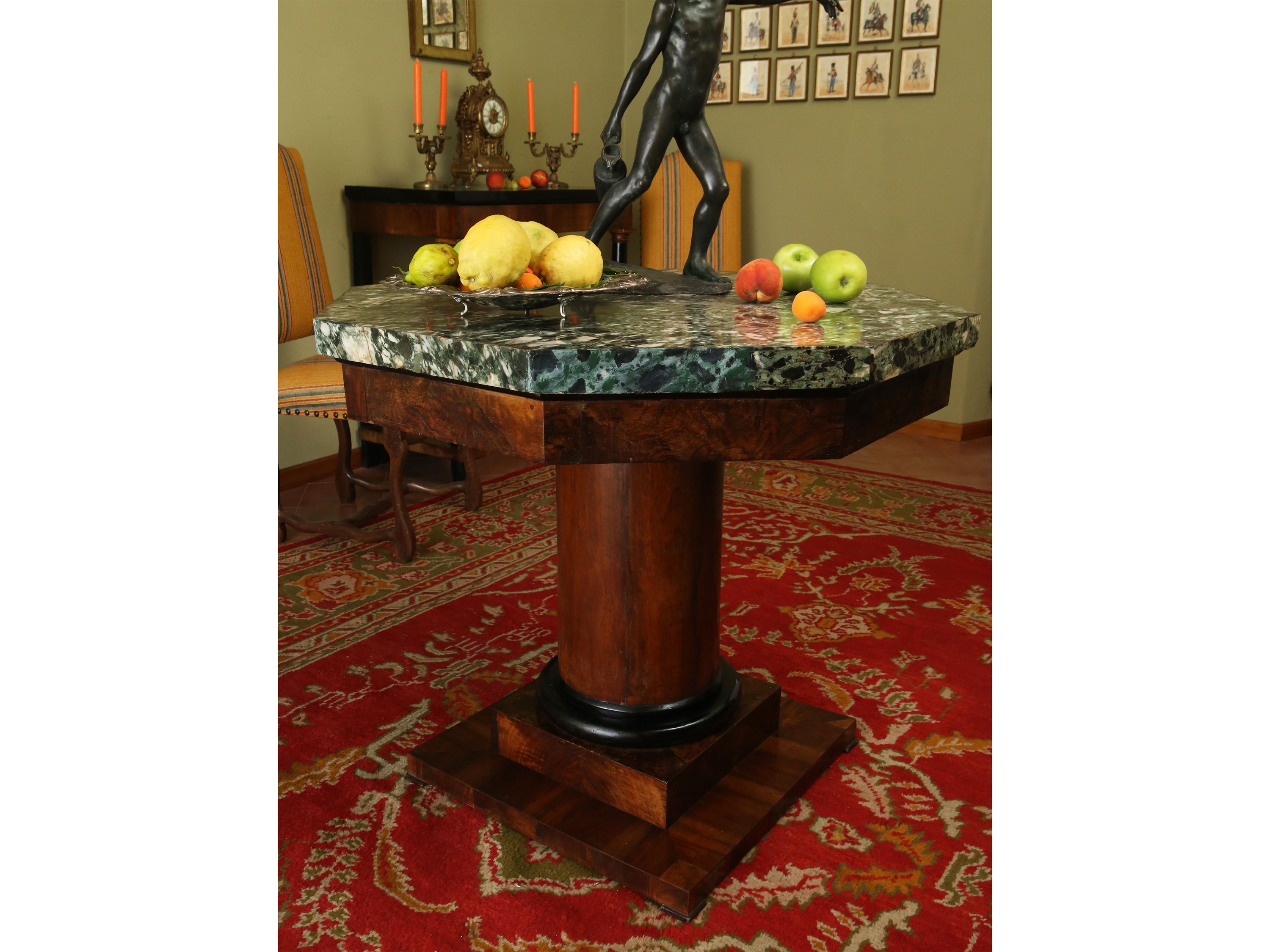 XIX secolo piano ottagonale rivestito in marmo breccia, sostegno centrale a colonna su base a gradini, lievi difetti e restauri al piano
