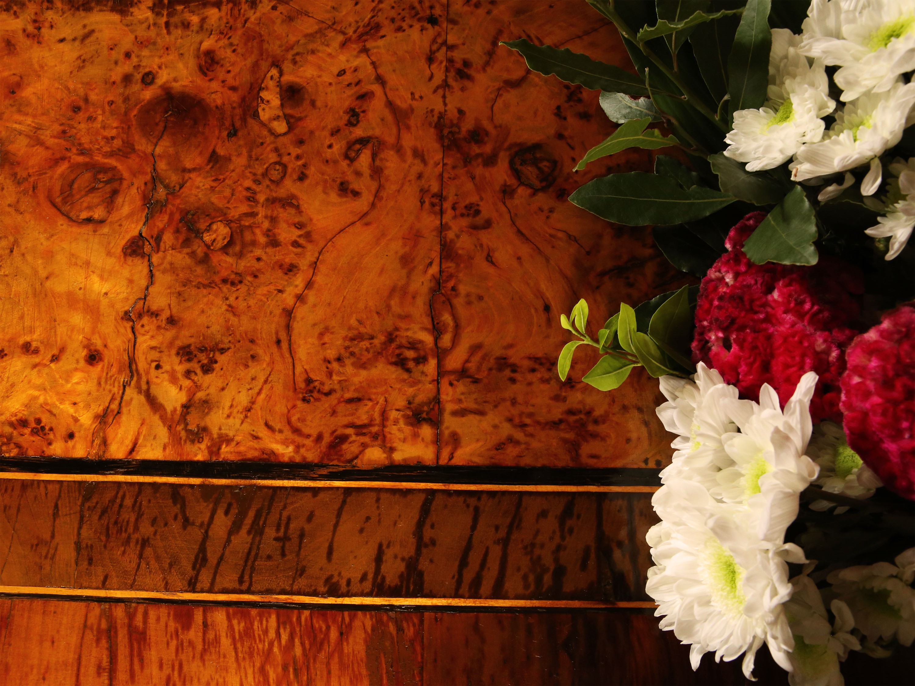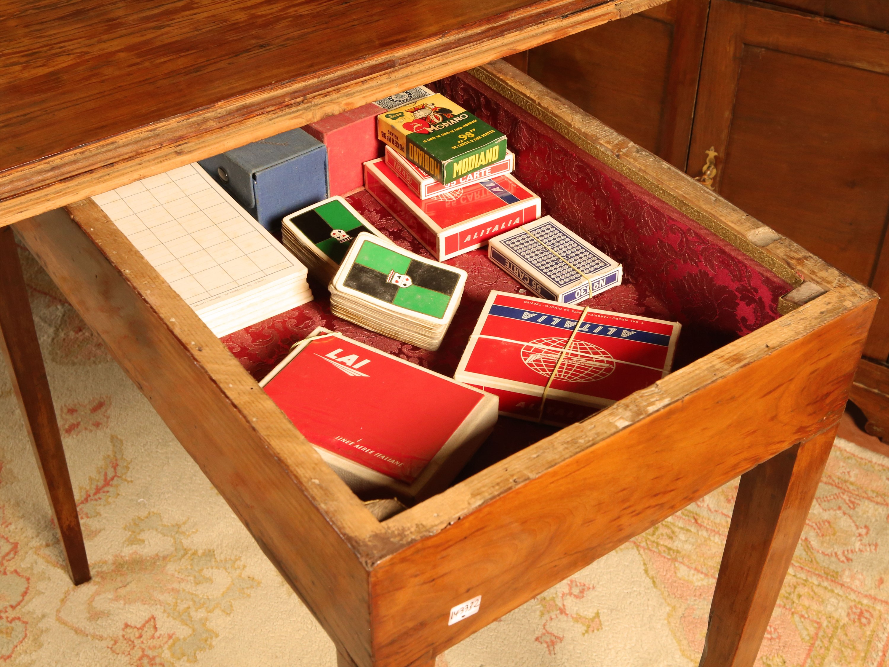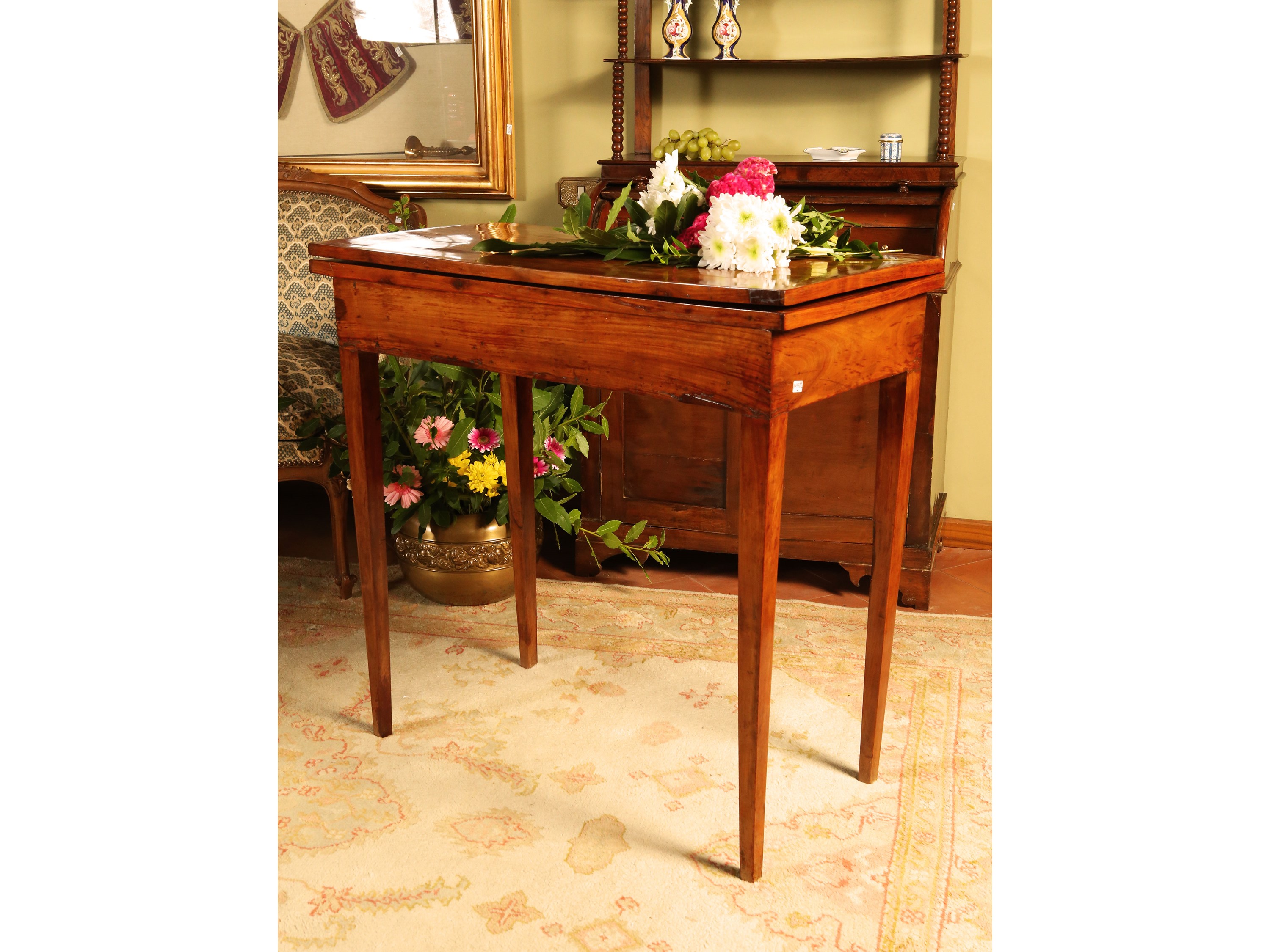 fine del XVIII secolo piano da aprirsi a libro intarsiato all'interno in radica di tuia e legni di frutto, gambe a faretra