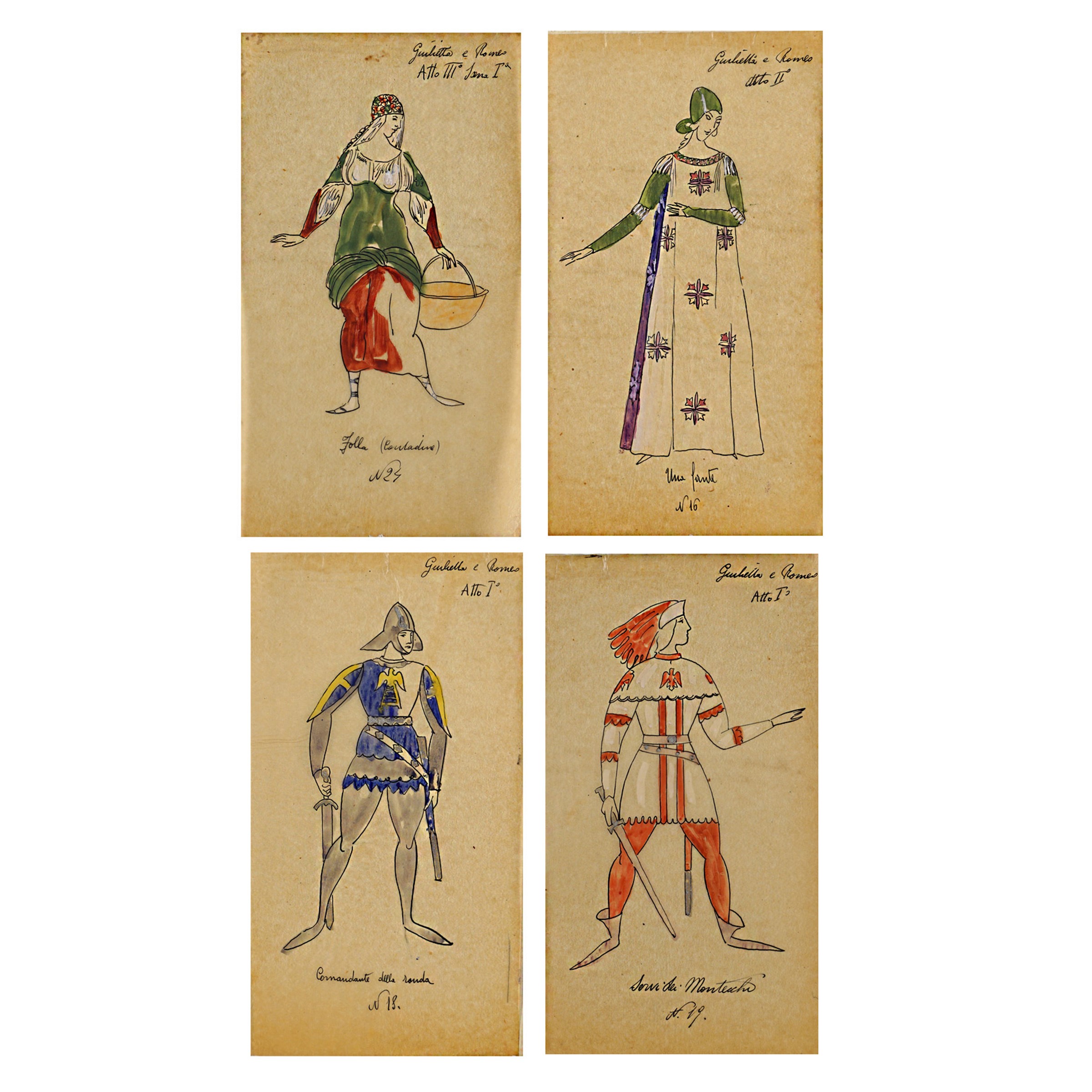 Roma, 1922 circa 4 figurini teatrali per la rappresentazione dell' opera Giulietta e Romeo di Riccardo Zandonai su libretto di Arturo Rossato, tecnica mista su carta, difetti