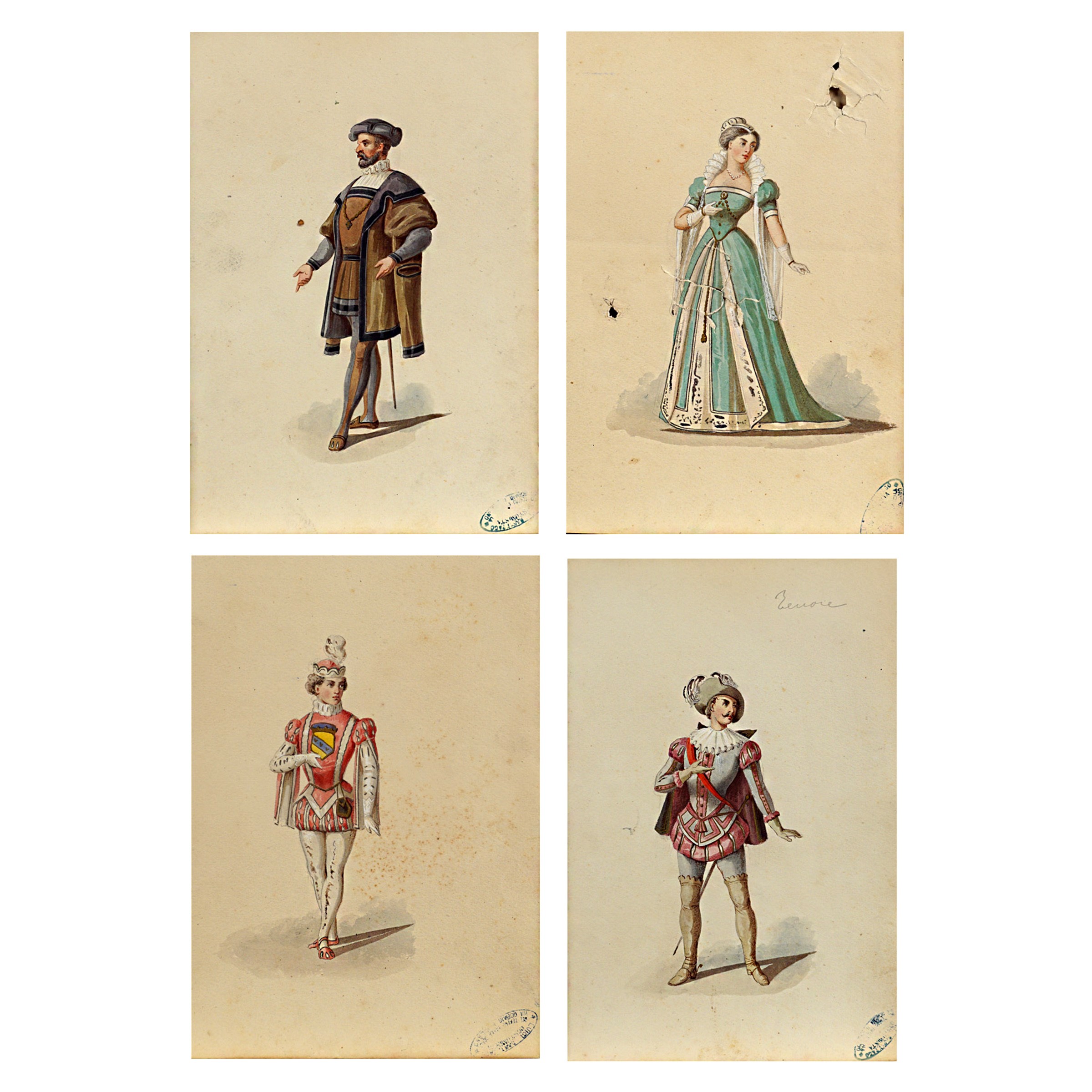 Milano 1820 - 1905 4 figurini, tecnica mista su carta, difetti