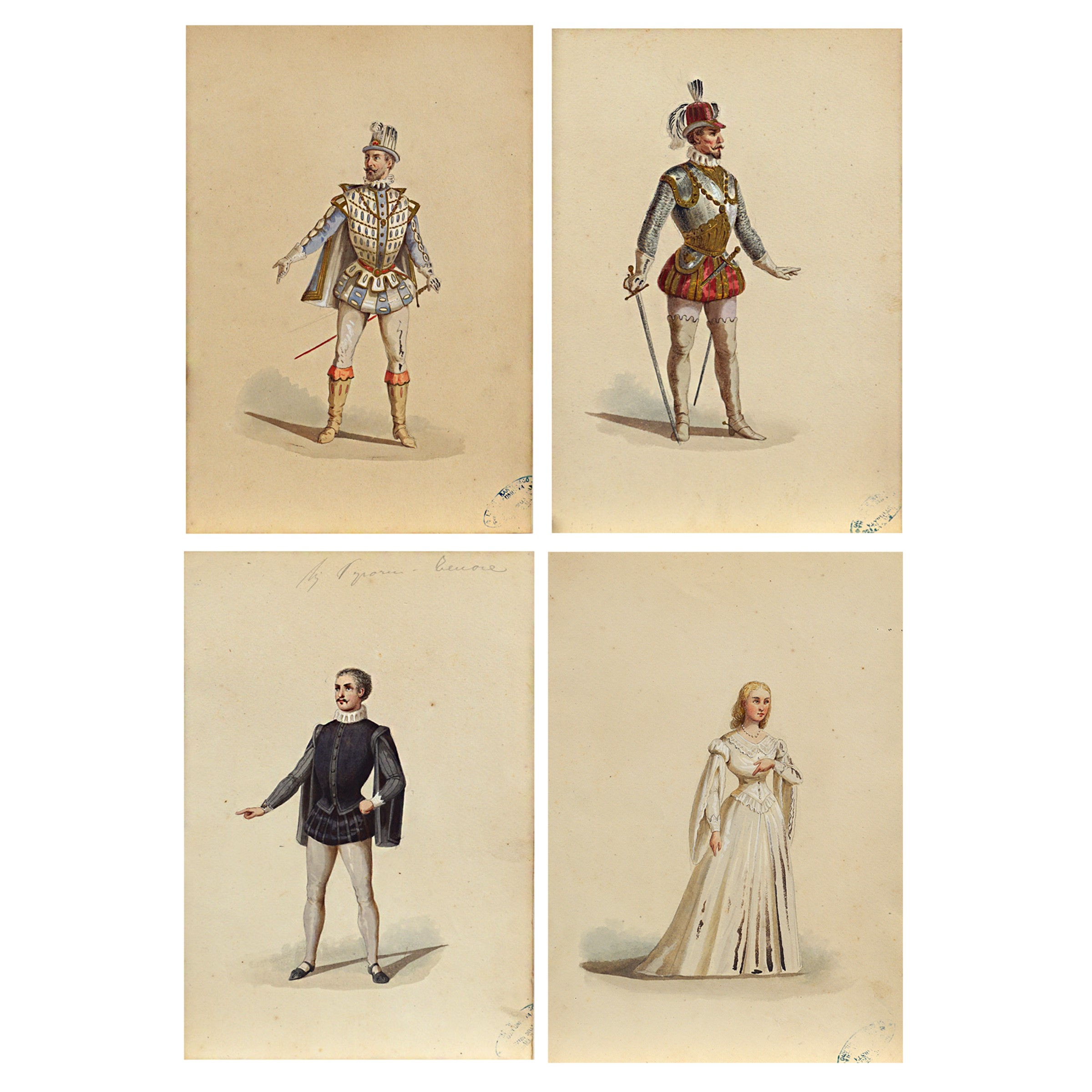 Milano 1820 - 1905 4 figurini, tecnica mista su carta, difetti