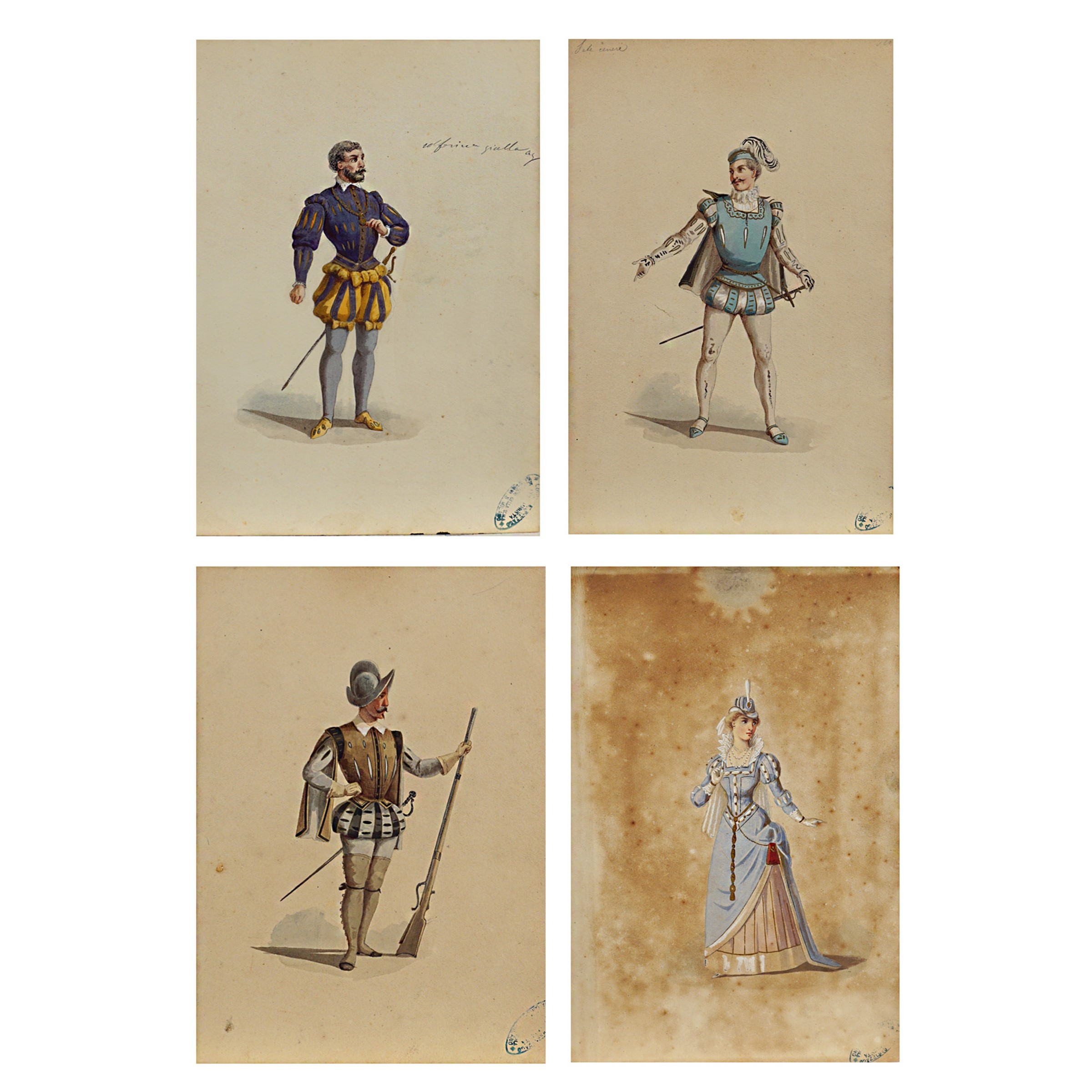 Milano 1820 - 1905 4 figurini, tecnica mista su carta, difetti