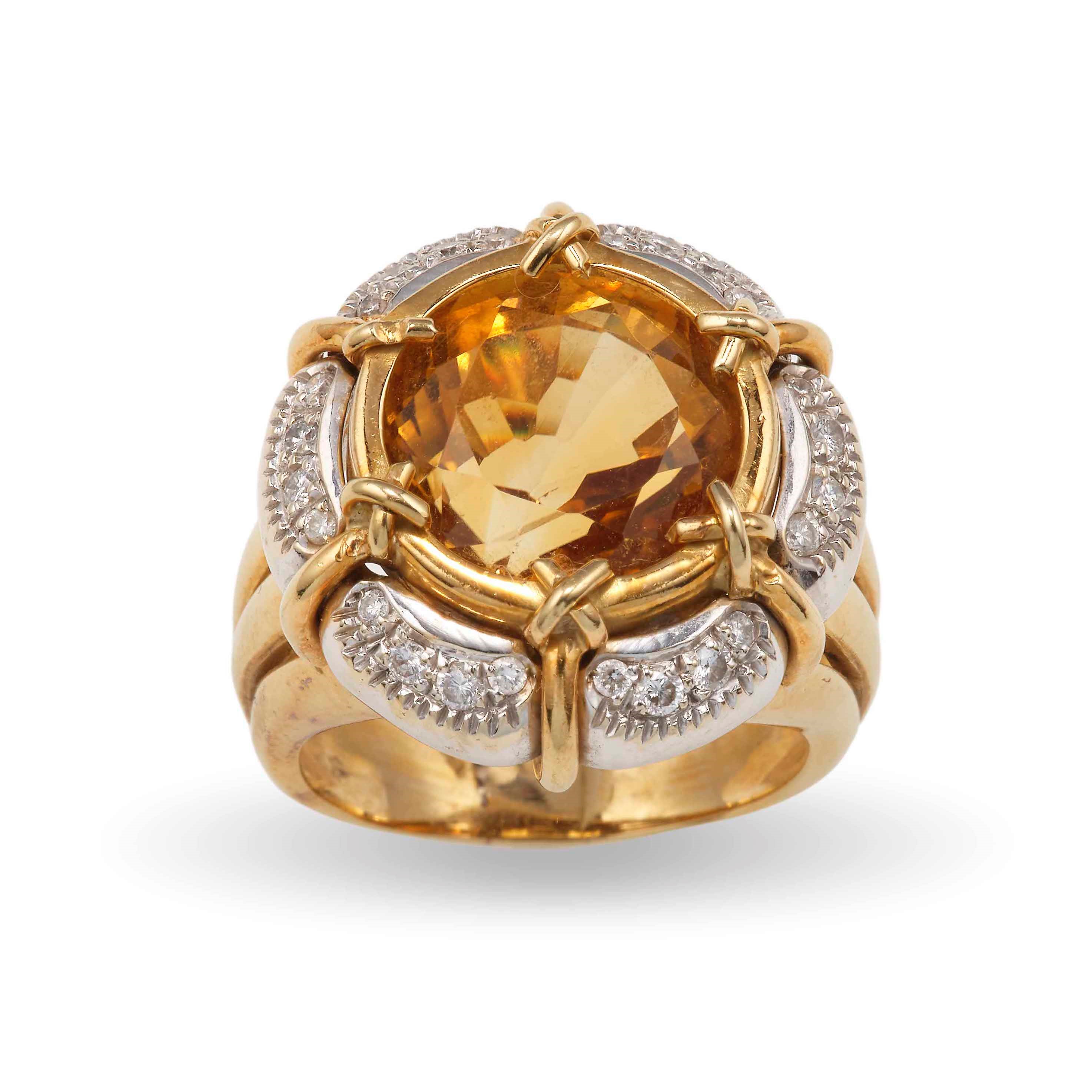 Anello ocn grande quarzo citrino e diamanti