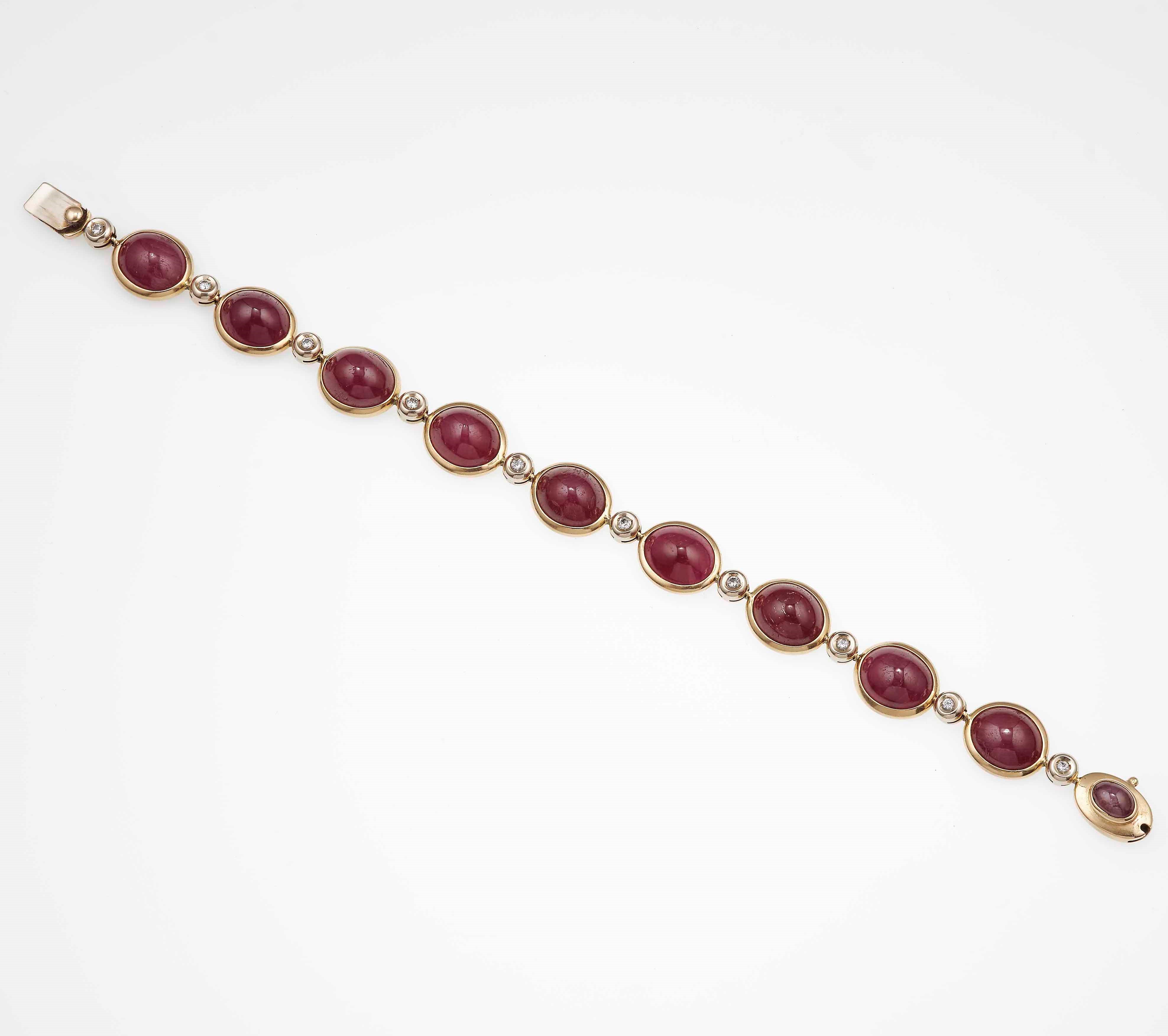 Bracciale con rubini taglio cabochon e piccoli diamanti