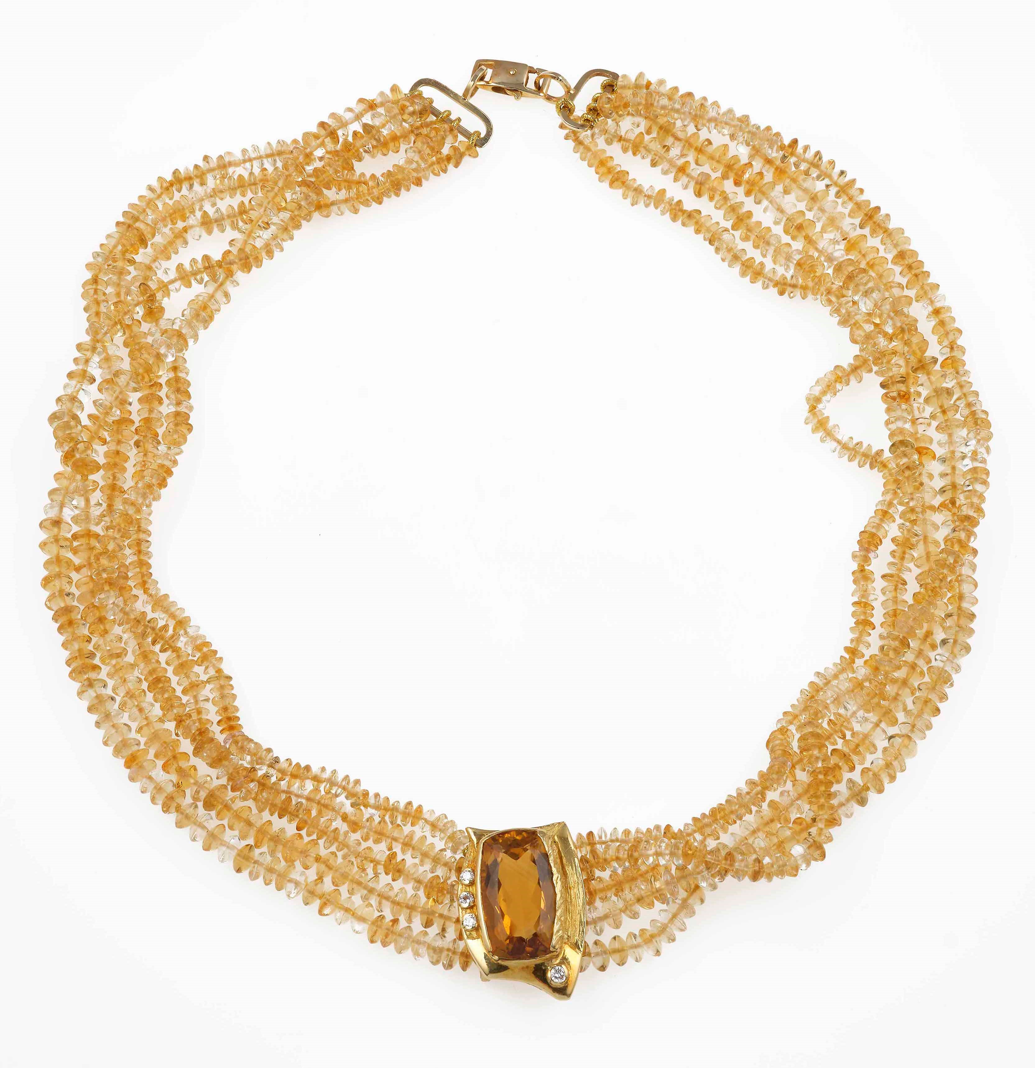 Collana a cinque fili con quarzi citrini