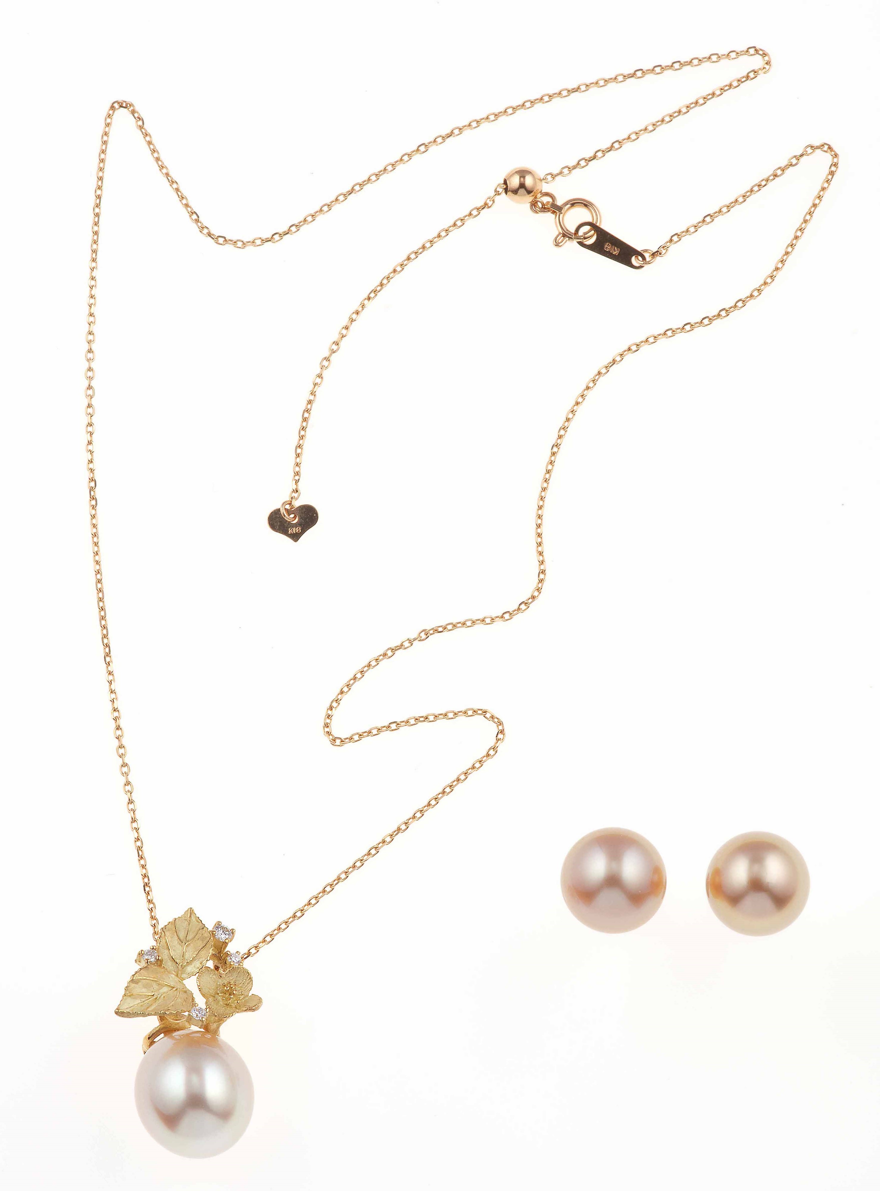 Demi-parure composta da pendente ed orecchini con perle gold