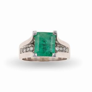 Anello con smeraldo Brasile di ct 2.30 circa e diamanti