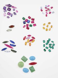 Grande lotto composto da gemme sintetiche tagli saccettati e cabochon e quindici [..]