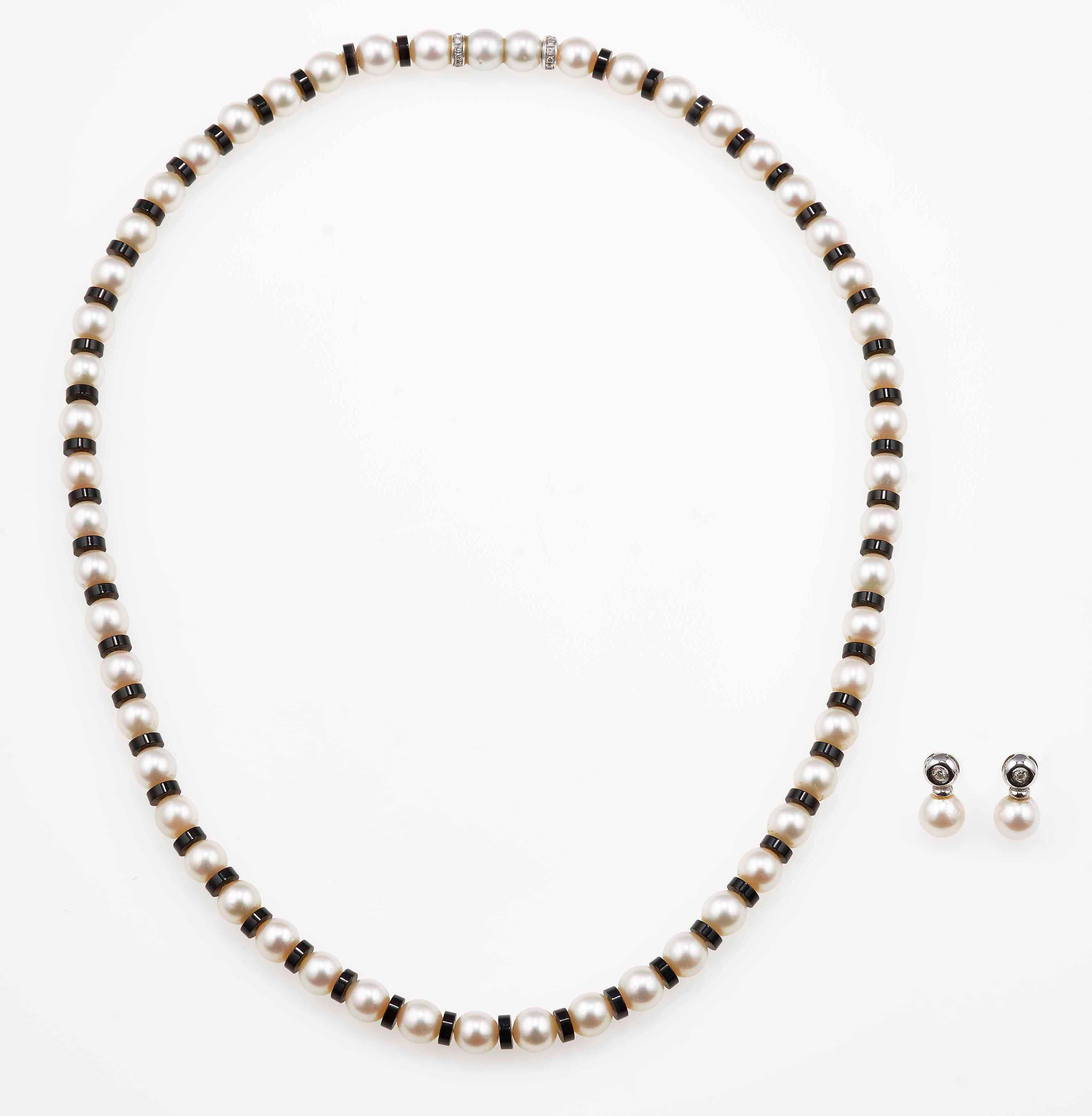 Lotto composto da collana di perle con onice ed una paio di orecchini di perle con [..]