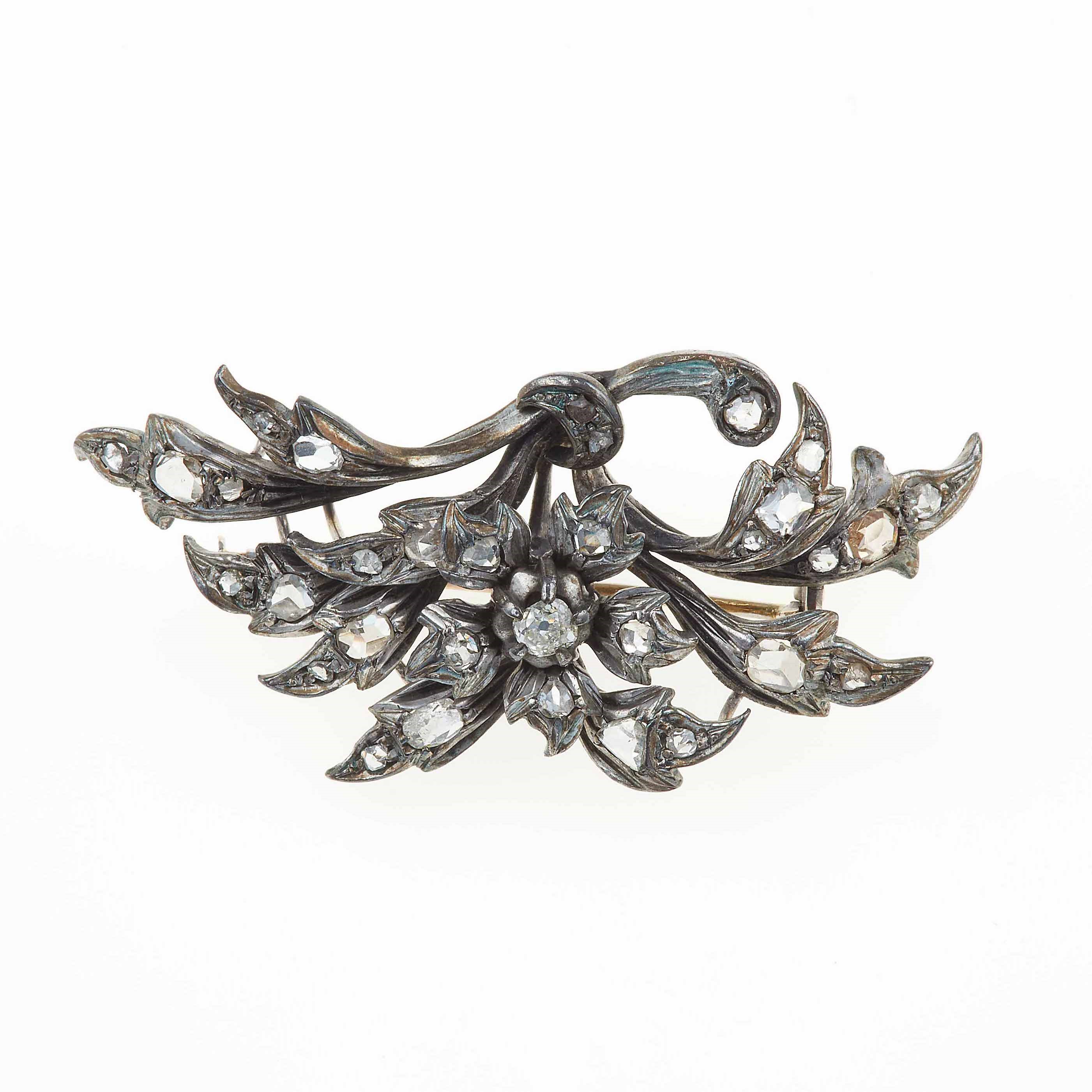 Lotto composto da una spilla con diamanti taglio rosa ed una spilla/pendente con [..]