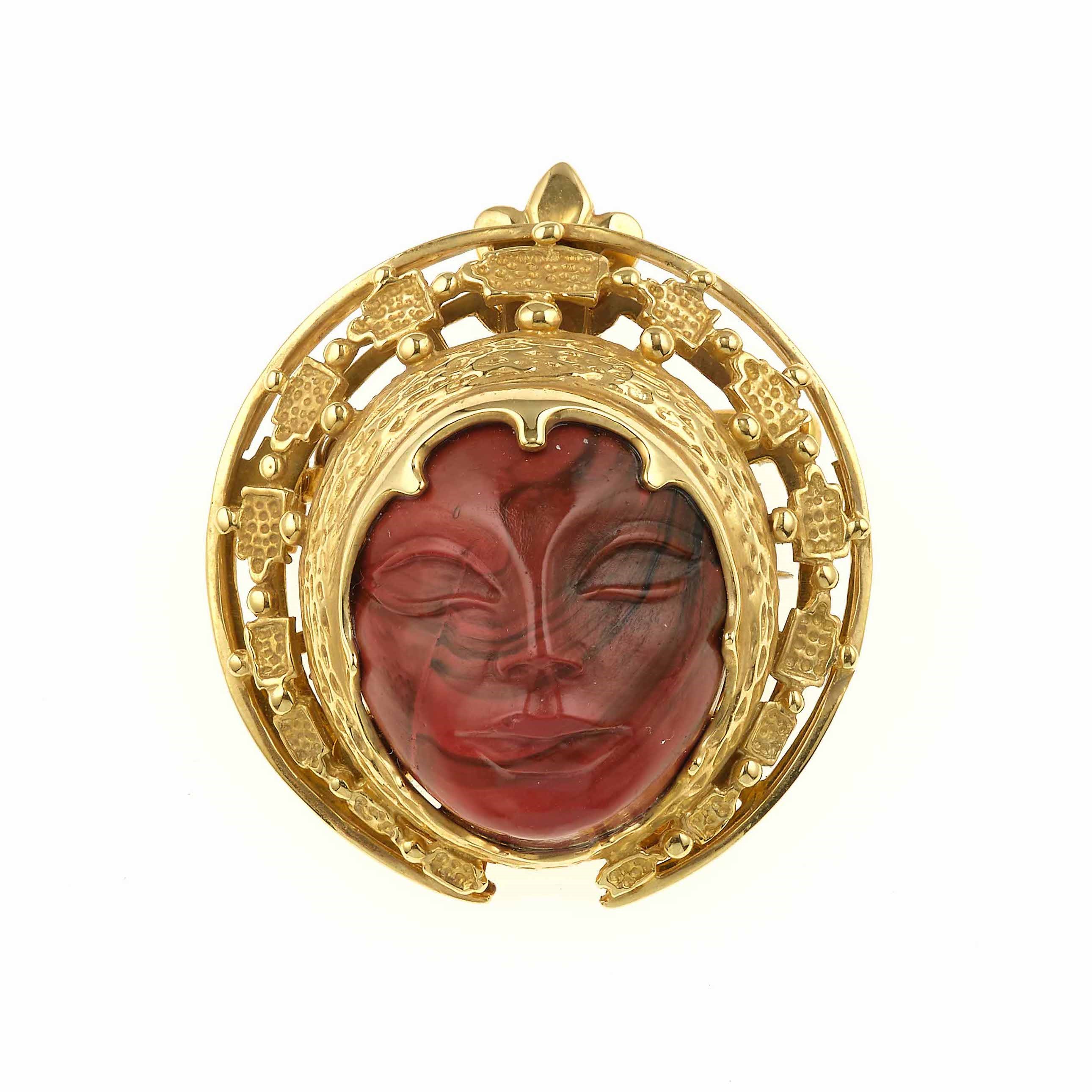 Pendente/spilla con diaspro rosso inciso