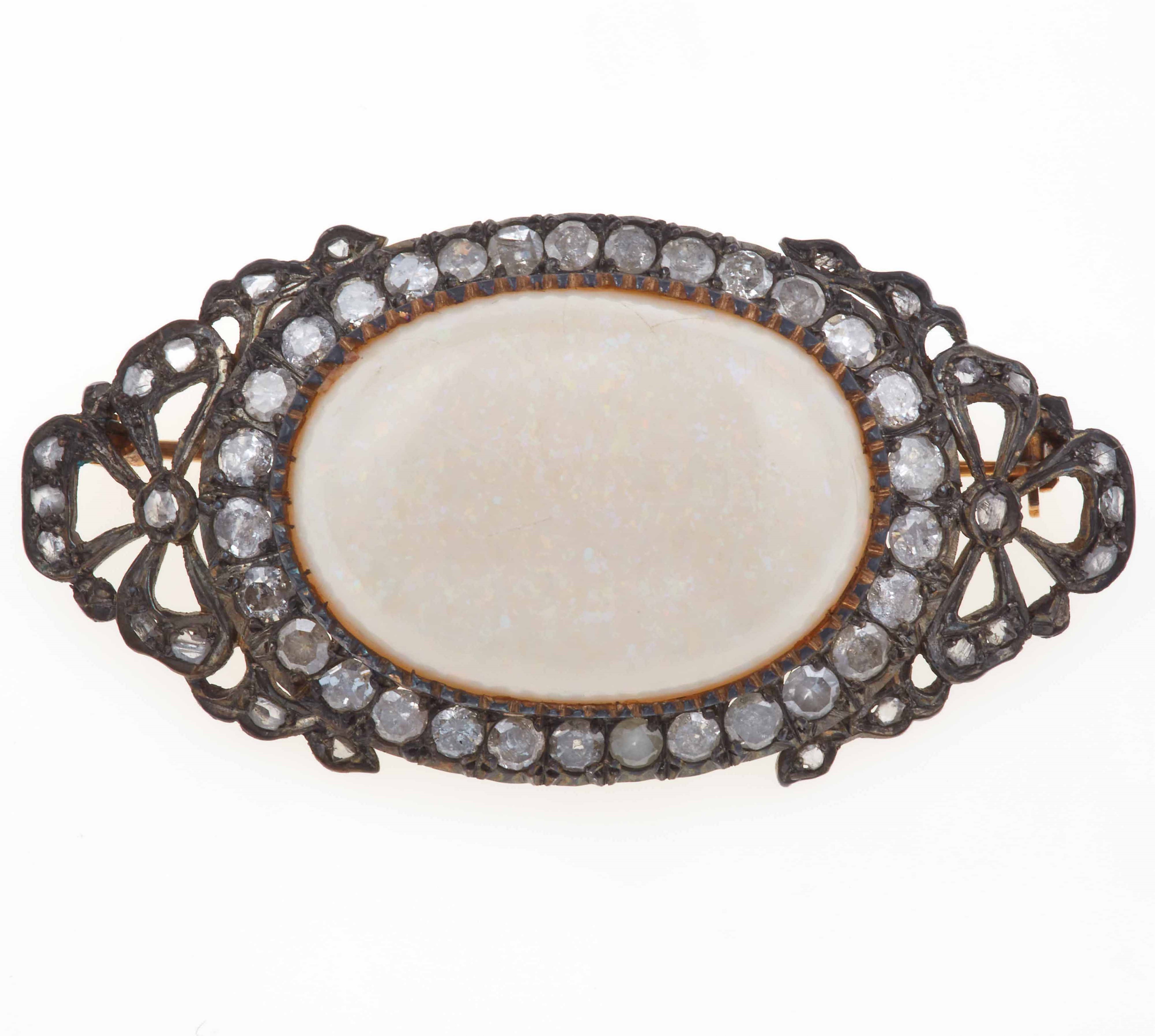 Spilla con grande opale e diamanti di vecchio taglio