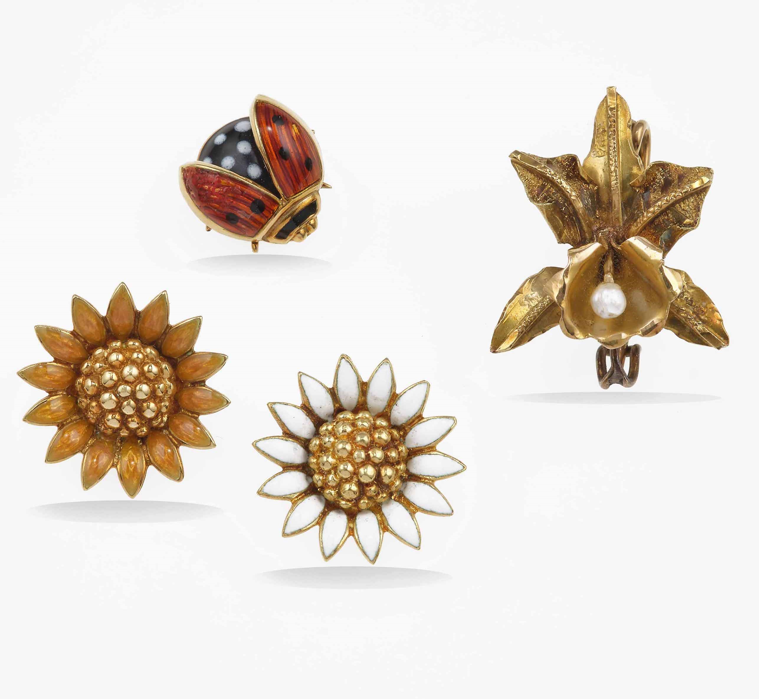 Tre piccoli bottoni da bavero ed una piccola spilla