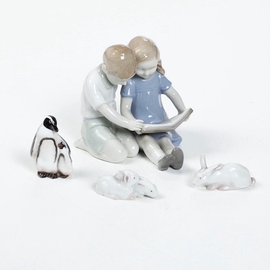 Figurine con bimbi, pinguini e conigli