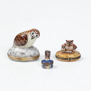 Tre scatole con gufi