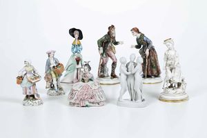 Un gruppo e due figurine in porcellana