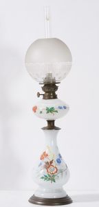 Lampada a petrolio decorata con fiori policromi