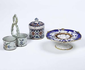Oliera, Faenza, fine del XVIII sec.; vasetto con coperchio, Marocco, XIX sec.; alzatina, [..]