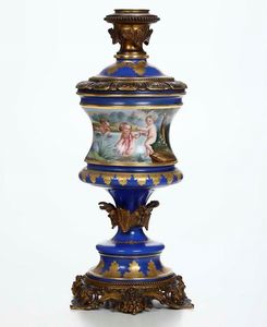 Vaso a fondo blu decorato a fiori in policromia oro e platino, XX secolo