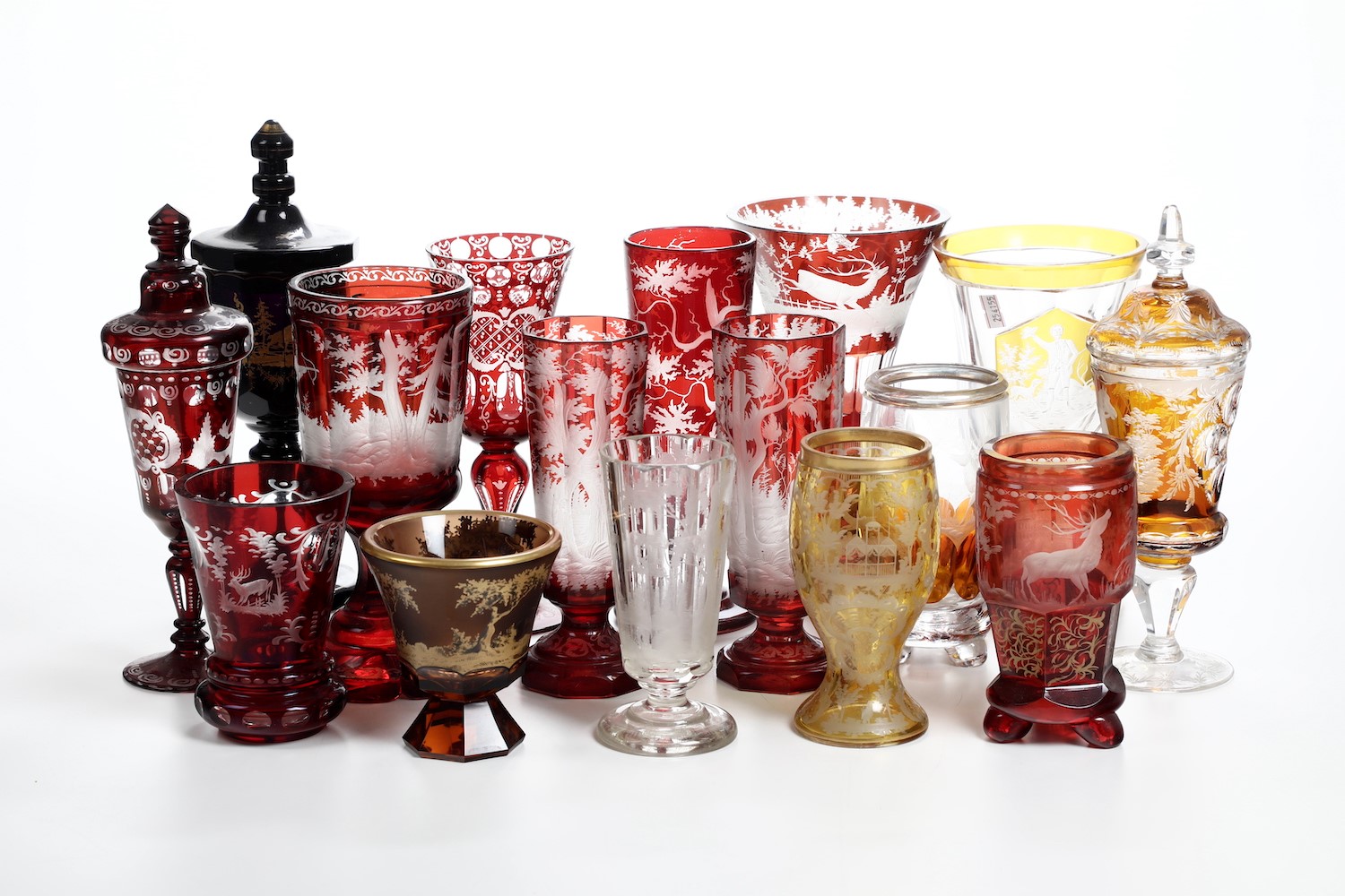 Sedici bicchieri con motivi di cacciagione