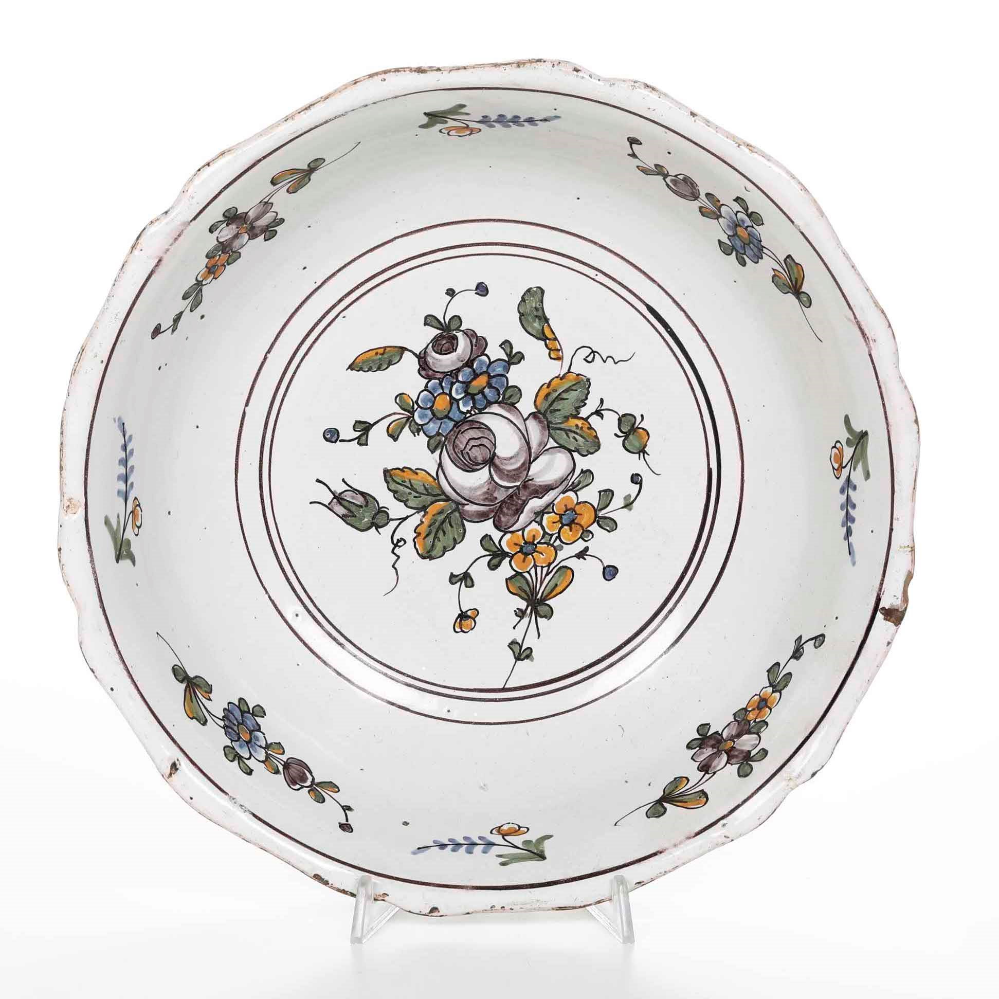 Bacili da barbiere, bacinelle e fioriere in maiolica francese da collezione
