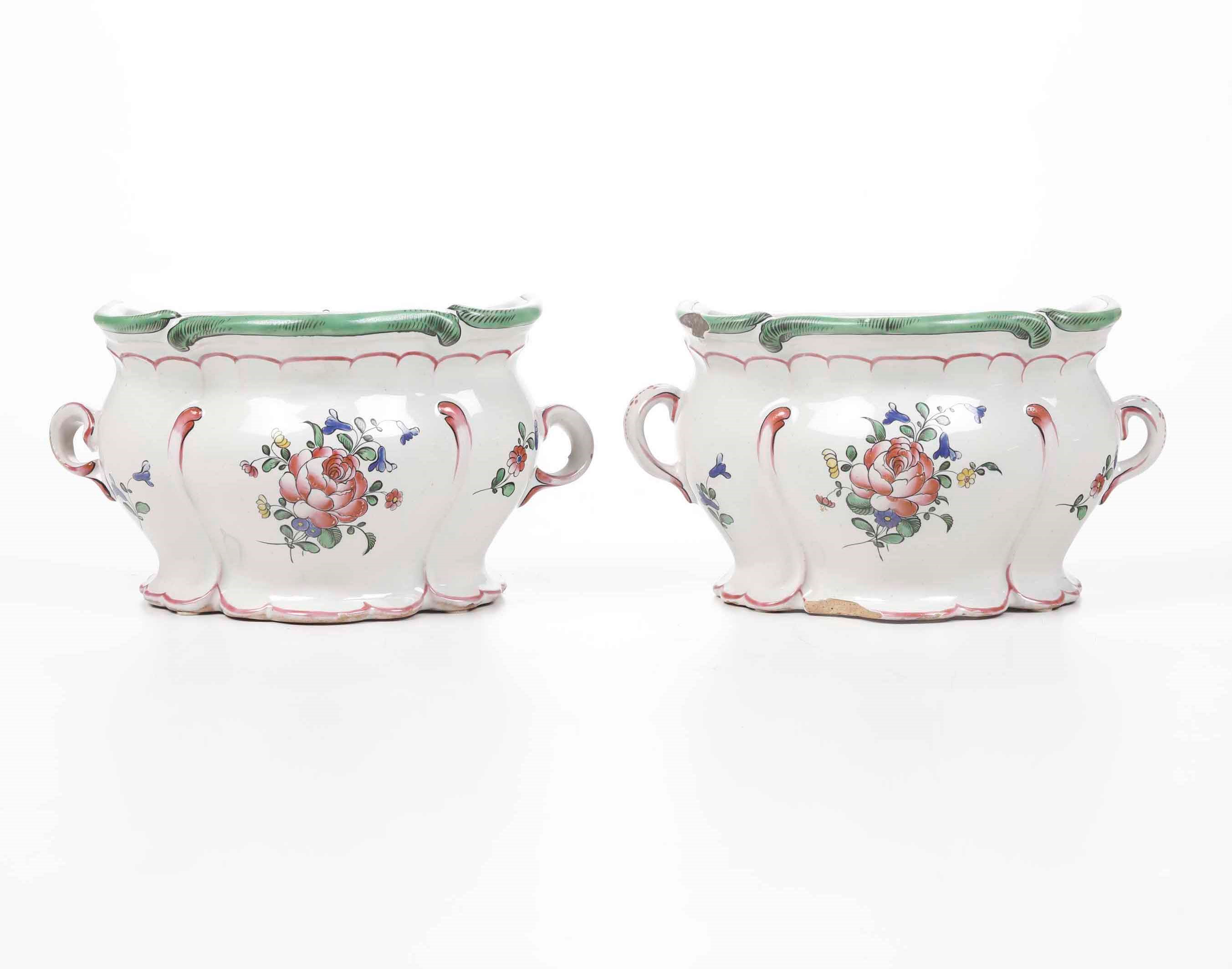 Bacili da barbiere, bacinelle e fioriere in maiolica francese da collezione
