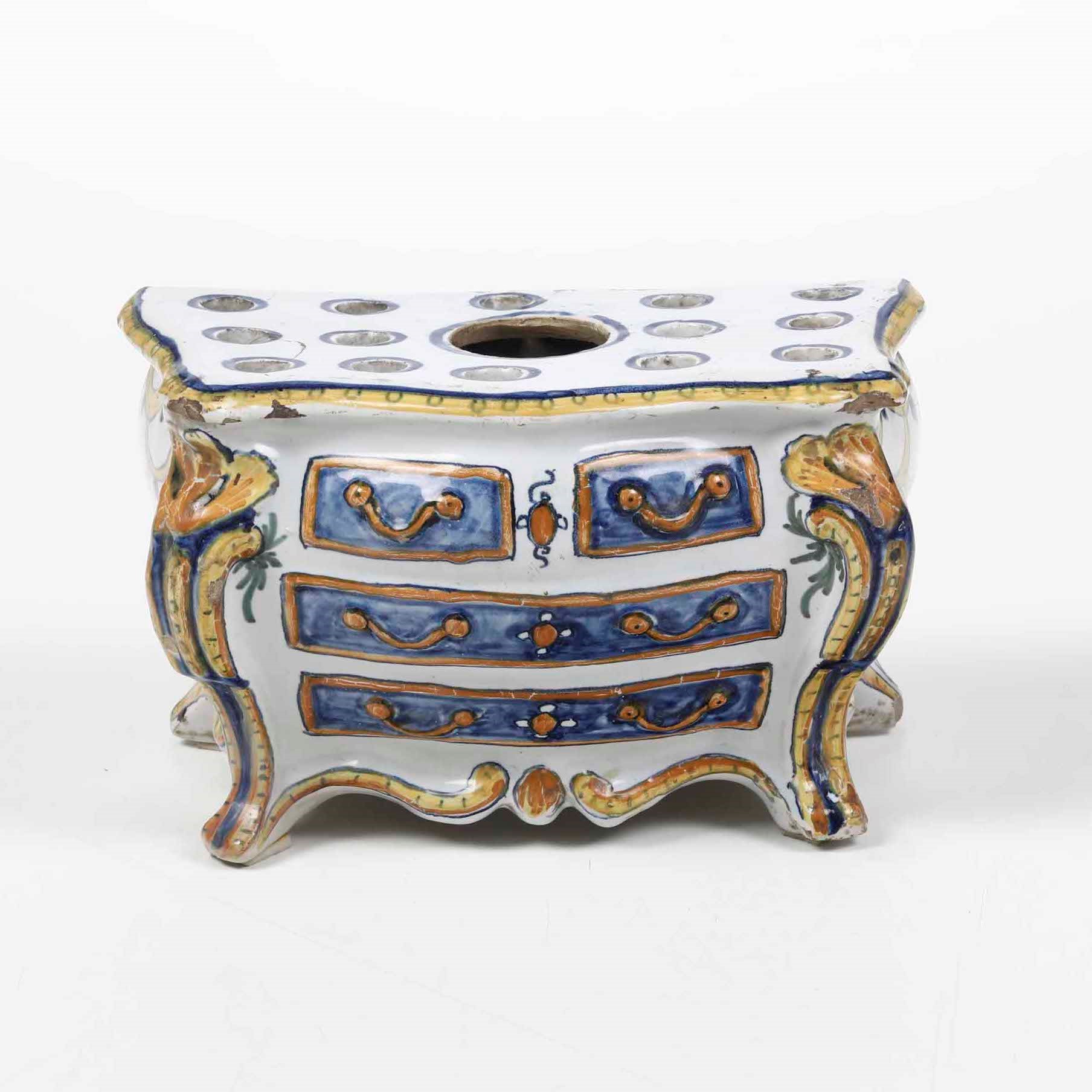 Bacili da barbiere, bacinelle e fioriere in maiolica francese da collezione