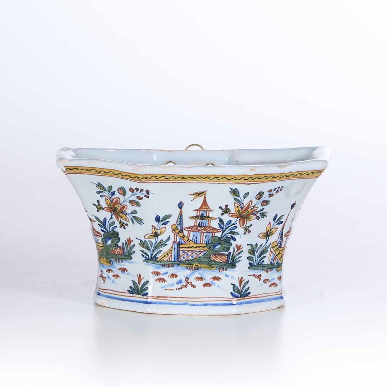 Bacili da barbiere, bacinelle e fioriere in maiolica francese da collezione