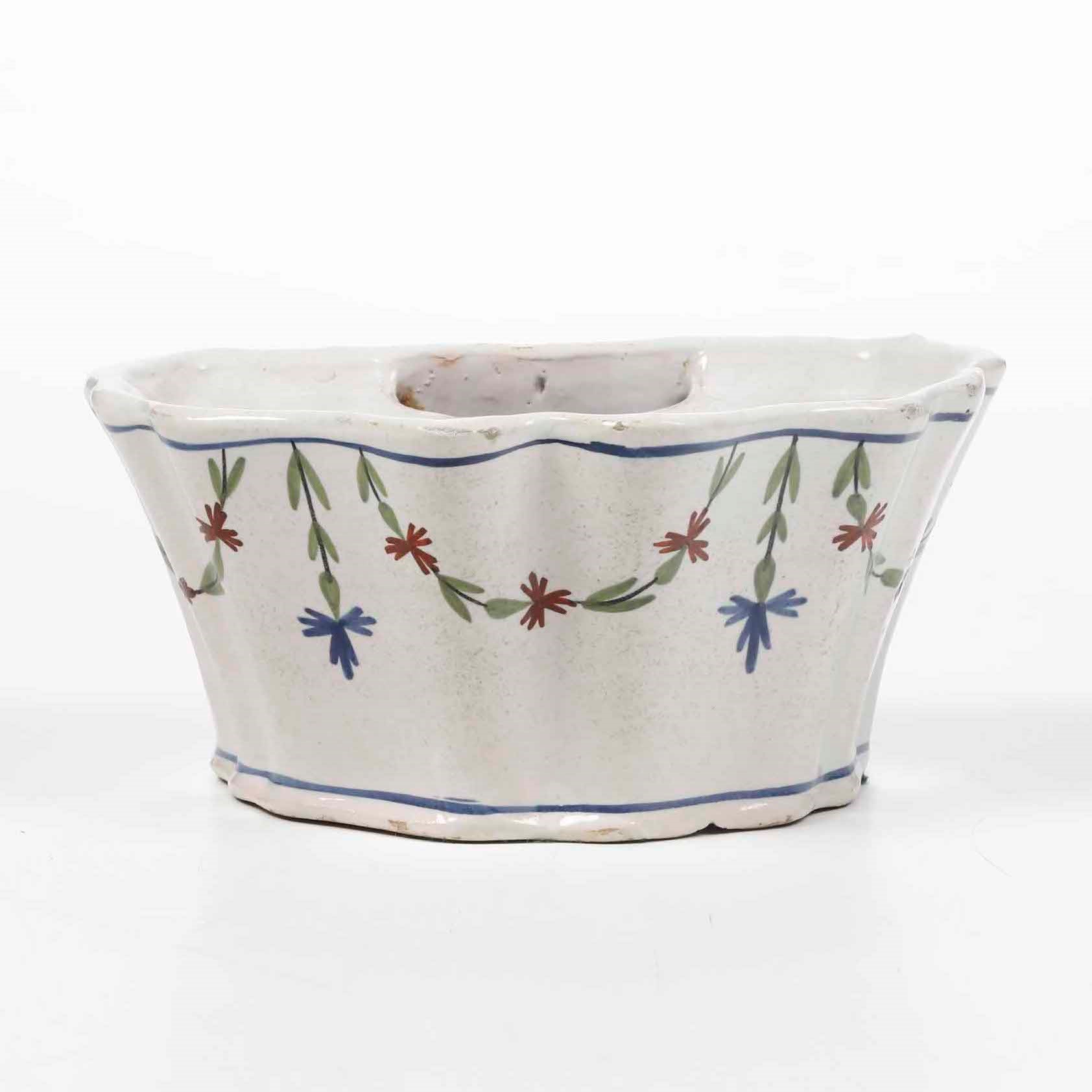 Bacili da barbiere, bacinelle e fioriere in maiolica francese da collezione