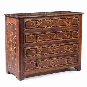 Cassettone lastronato, filettato e intarsiato. Italia settentrionale, XVIII seco [..]