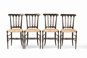Quattro sedie tipo chiavarine in legno ebanizzato