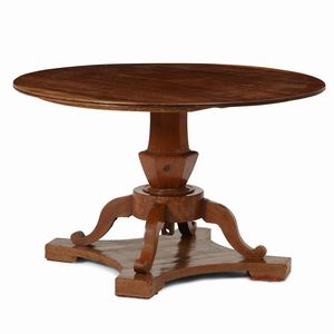 Tavolo circolare in legno con gamba a balaustro, XIX-XX secolo