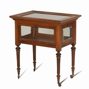 Tavolino in legno con gambe a rocchetto, XIX secolo
