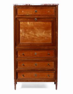 Scrivania in legno lastronato ed intarsiato, XIX-XX secolo