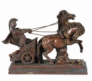 Scultura di biga trainata da cavalli in metallo, XIX-XX secolo