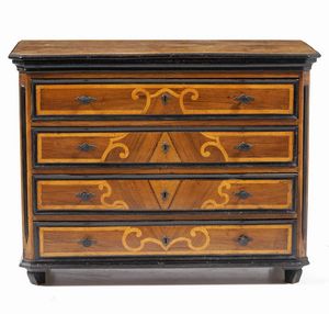 Cassettone lastronato, intarsiato e filettato. Lombardia, XVIII secolo