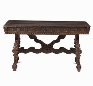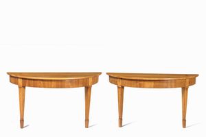 Coppia di tavolini bassi, ricomposti con elementi antichi intagliati. Italia centrale, [..]