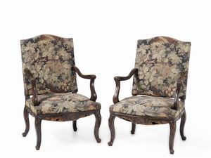 Coppia di poltrone in noce. Italia settentrionale, XVIII secolo