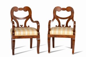 Coppia di poltrone in legno intagliato, Francia XIX secolo