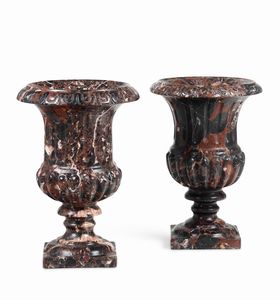 Coppia di vasi medicei in marmo. Arte neoclassica italiana del XIX secolo