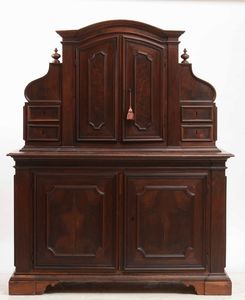 Grande credenza in noce a due corpi. Italia centrale, XVIII-XIX secolo