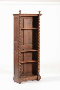 Etagère ad angolo neogotica, legno traforato ed ebanizzato, XIX secolo
