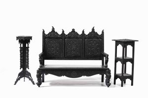Fornitura da salotto in legno intagliato a motivi zoomorfi, XX secolo