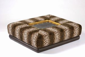 Fornitura da salotto leopardata, XX secolo. Due sedie, poggiapiedi e tavolo basso [..]